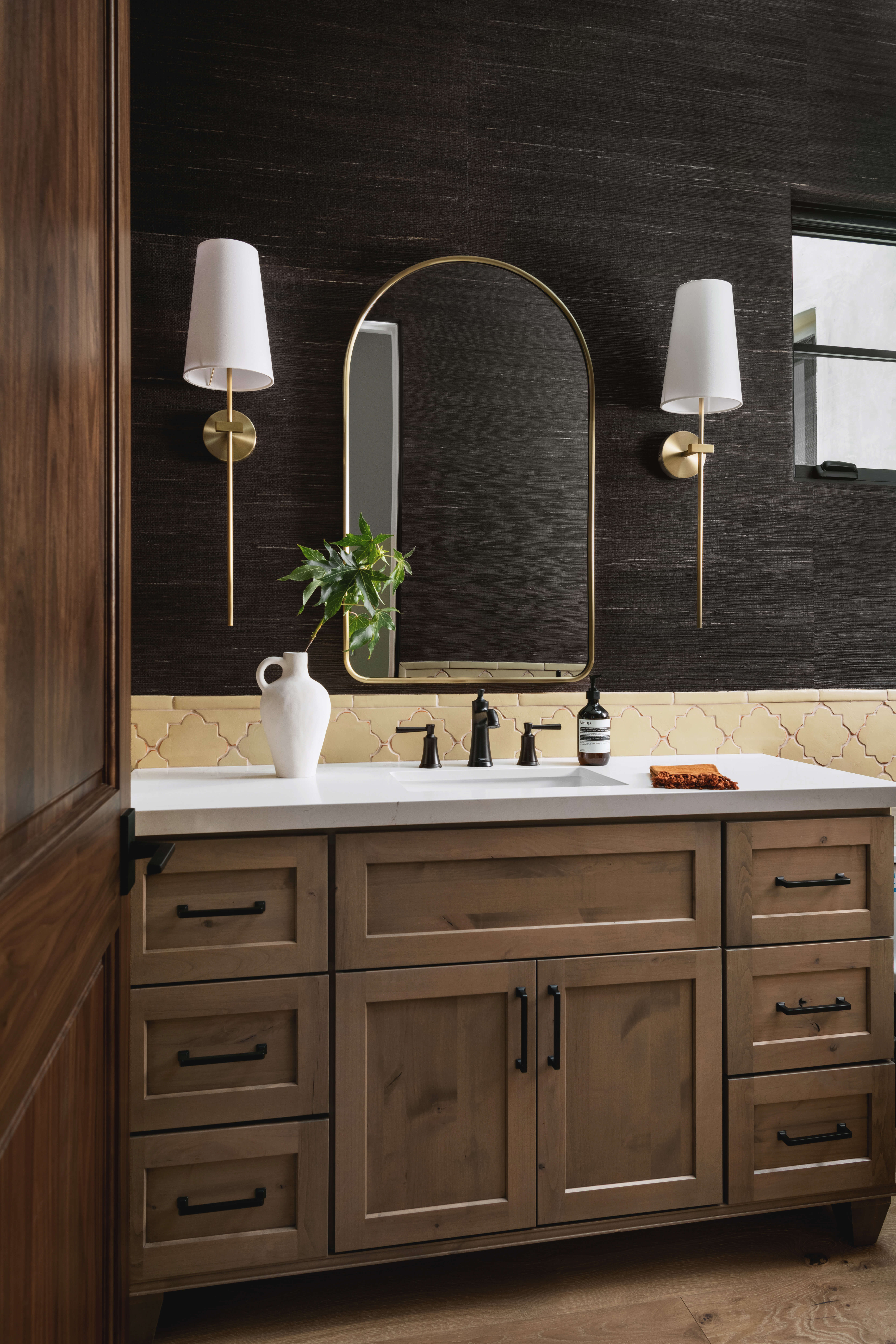 Another project featuring huge arched openings – one leading into the kitchen and another creating a bar niche. This design was created by Hannah Start of H Glory Designs in partnership with Autumn Blaschka of Standale Home Studio, Grand Rapids, MI. The cabinetry used is our Reese door style in Quarter-Sawn White Oak with Cashew stain. A classic detail meeting a contemporary cabinet style for the win!