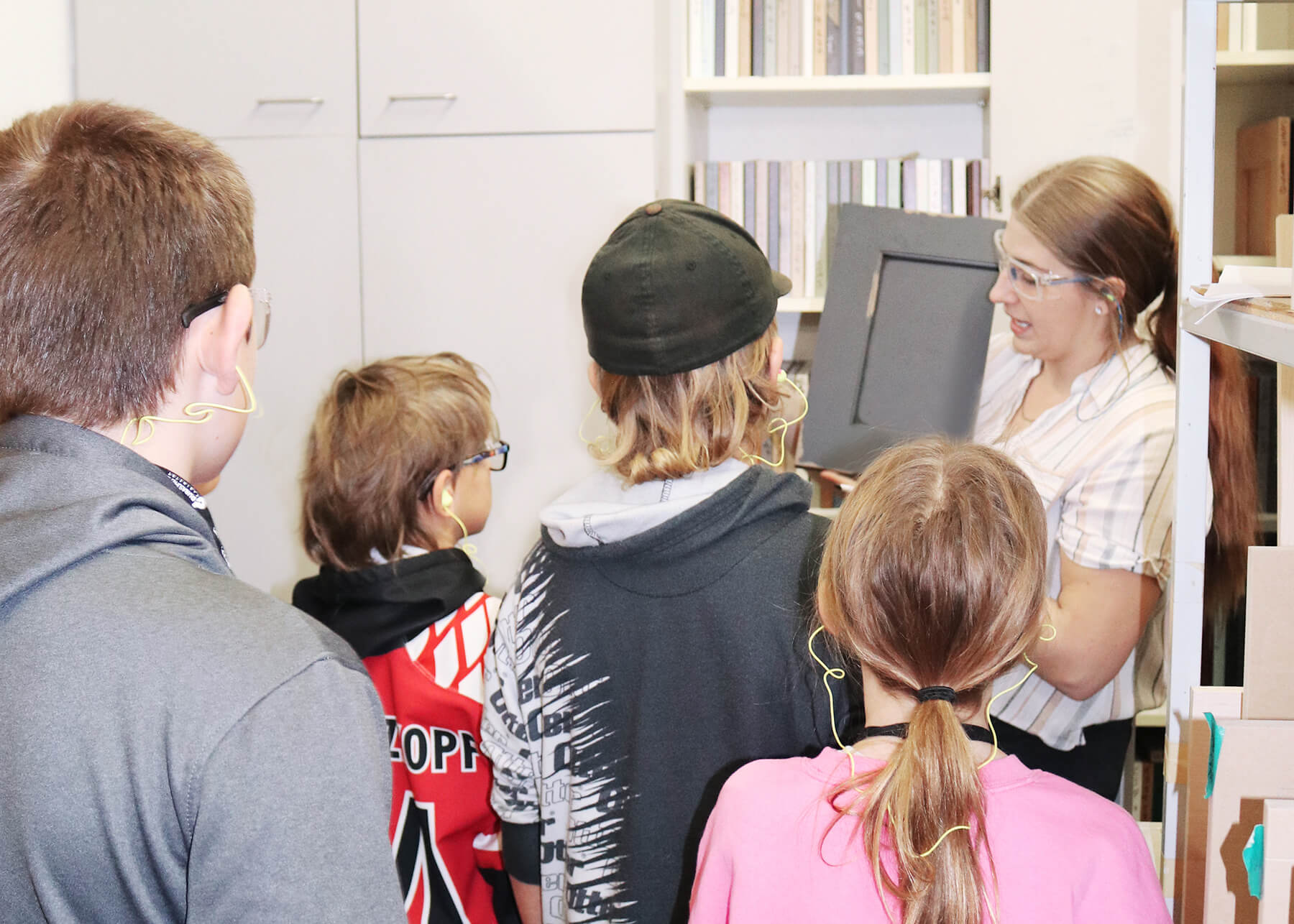 A Factory Tour is up next! Our volunteer tour guides take the children on a walk throughout our facility, teaching them how a cabinet is made from start to finish. They get to see first-hand what a work day looks like in manufacturing at Dura Supreme and how important each job is for helping ensure we make a quality product and service for our customers.
