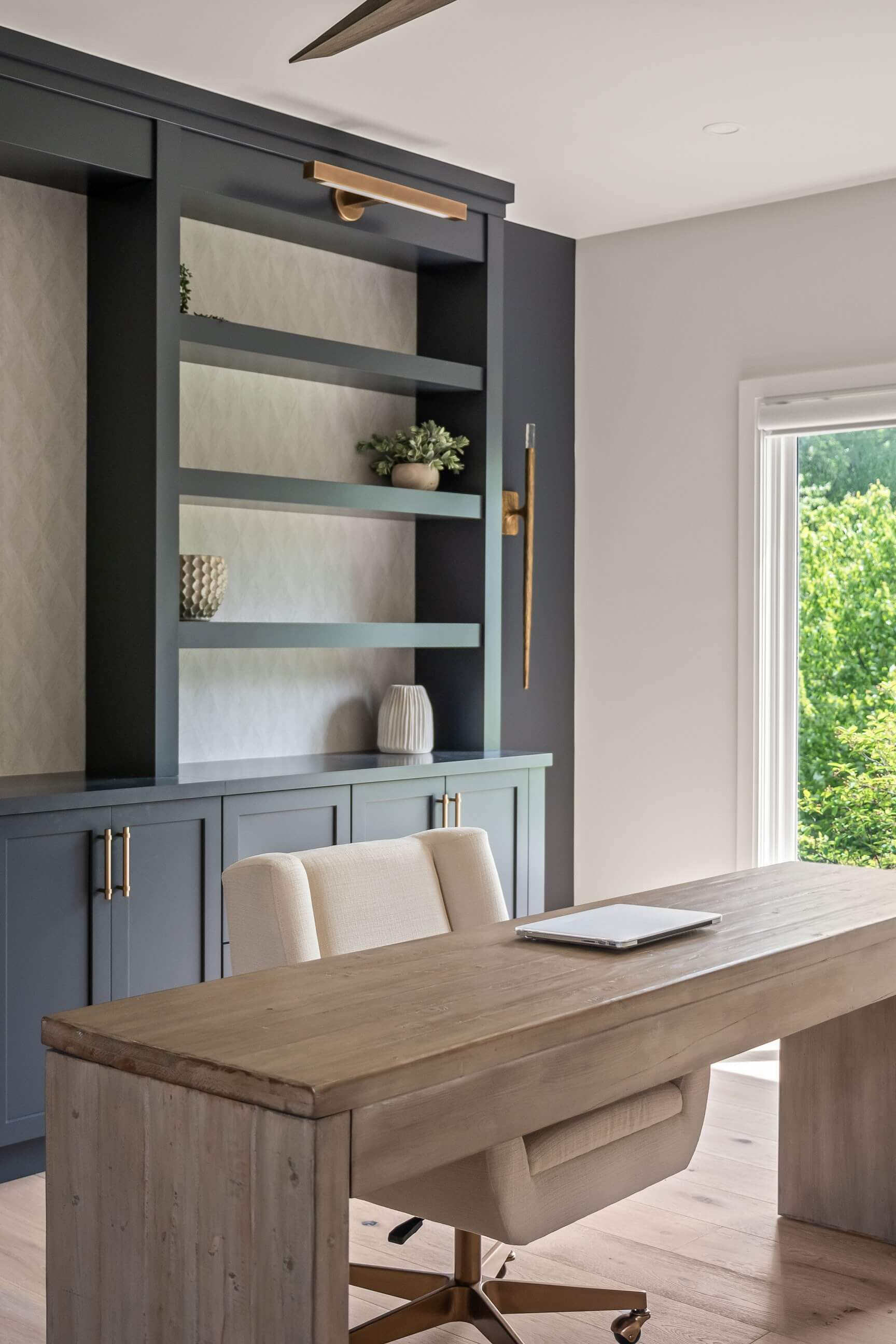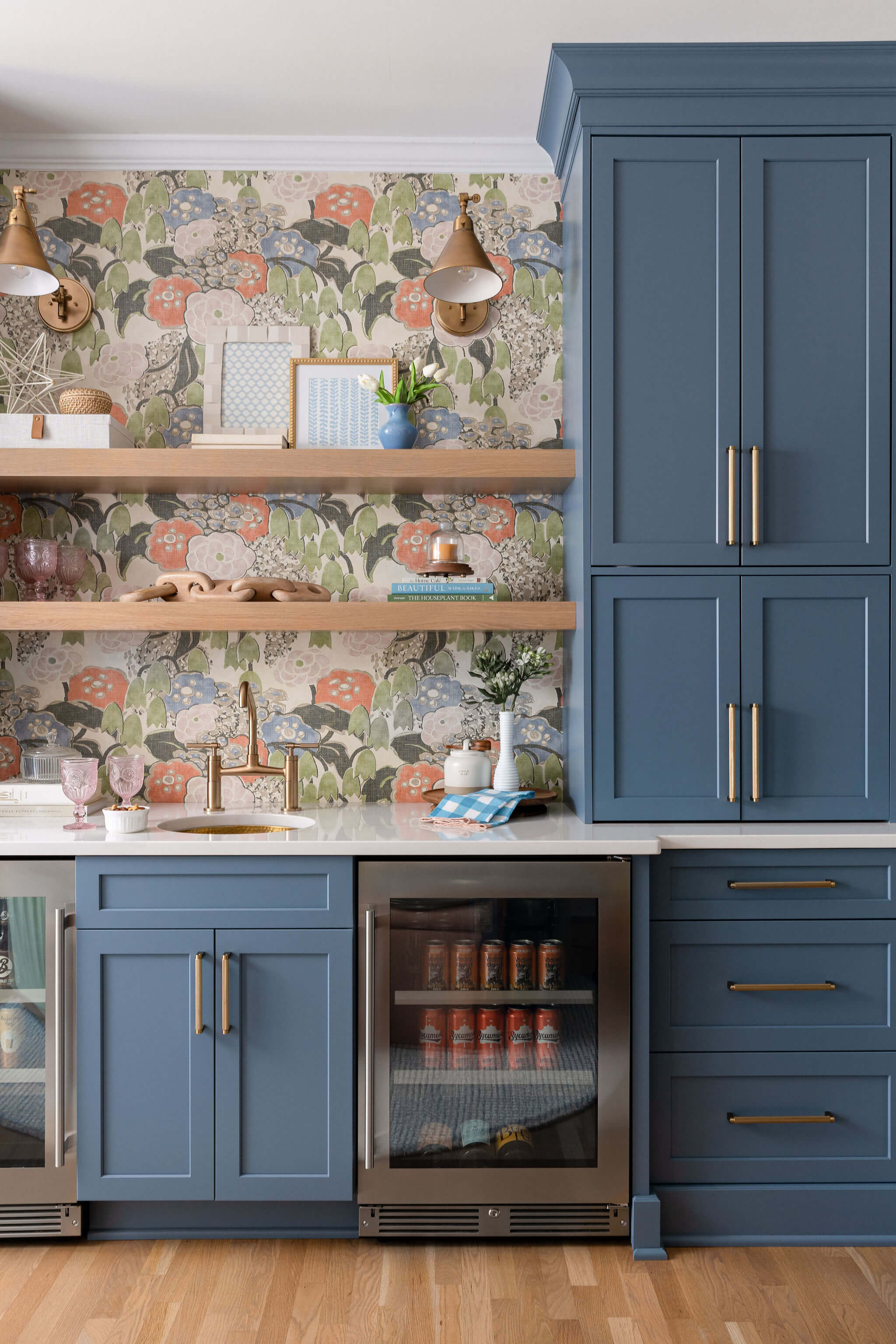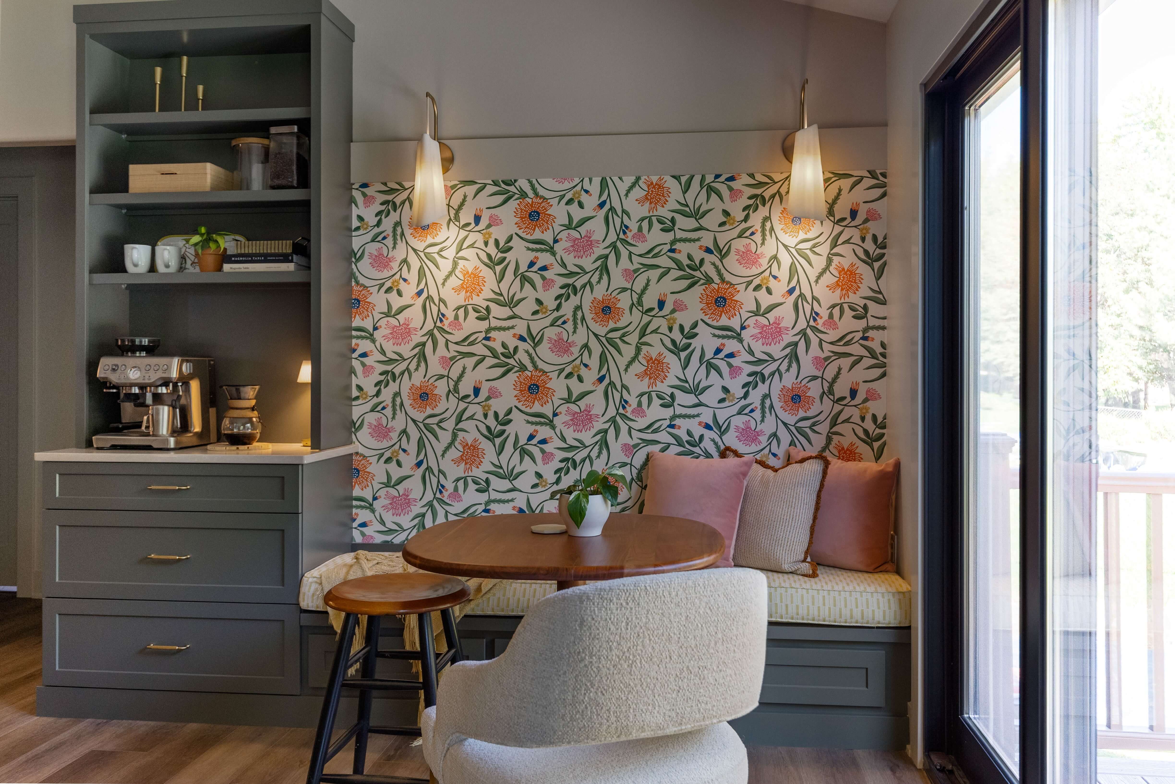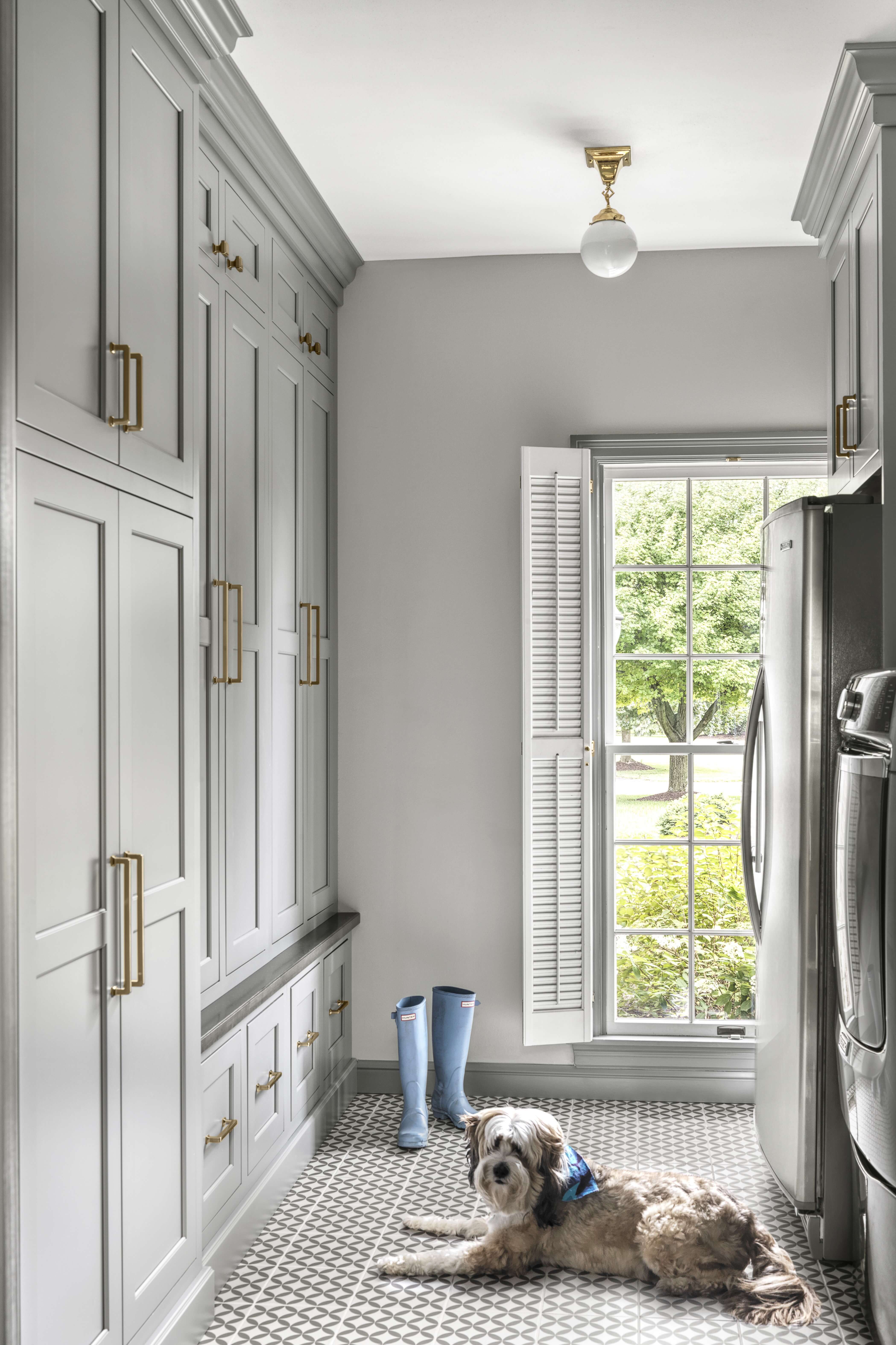 The project below combines both traditional and contemporary styles in one home. Both spaces use gold hardware on the cabinets, however, each space is unique; from the cozy corner banquet with gold-tone scones, to the bright and cheery entry with gold coat hooks. Both spaces feel more elevated with the warm, gold accents.