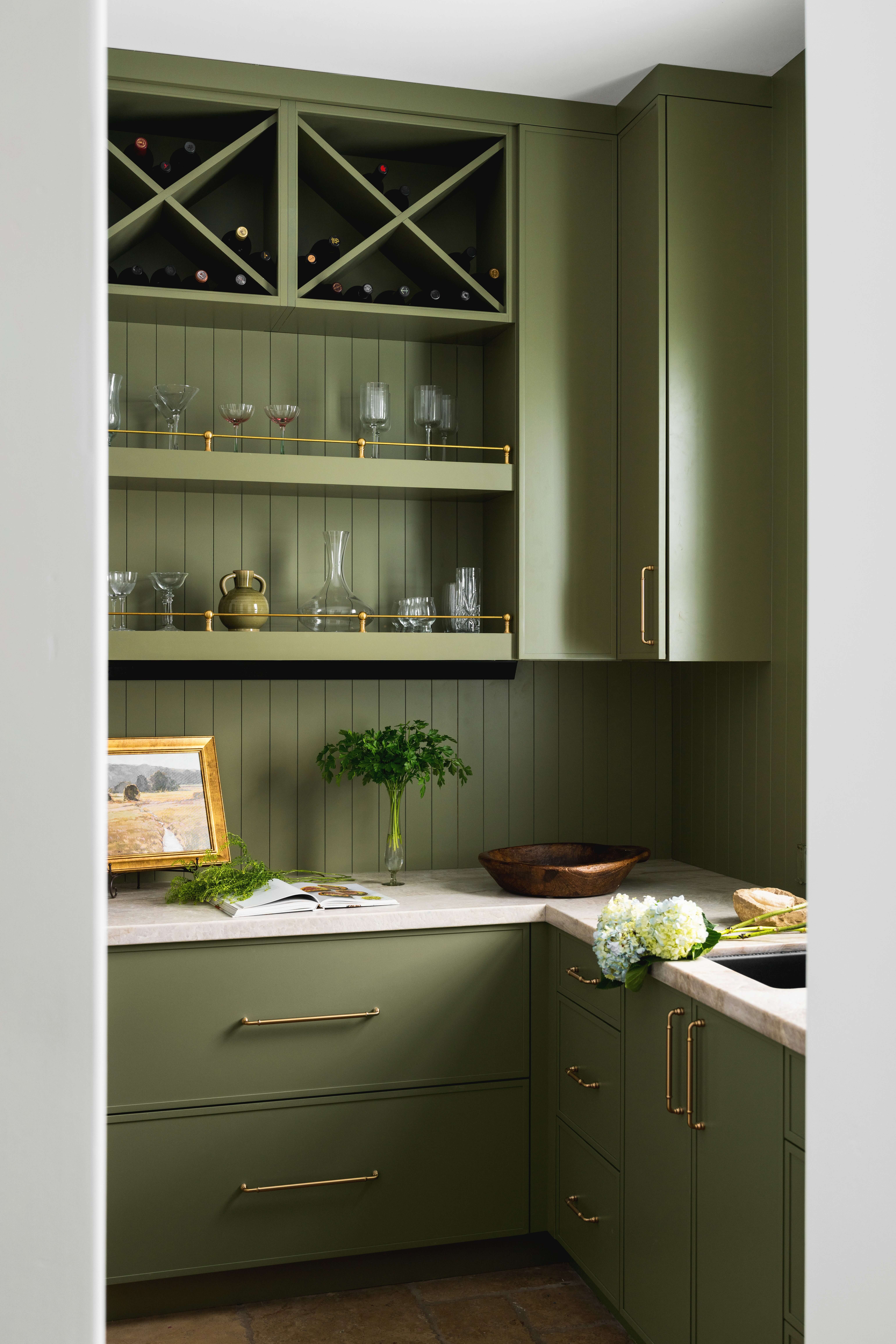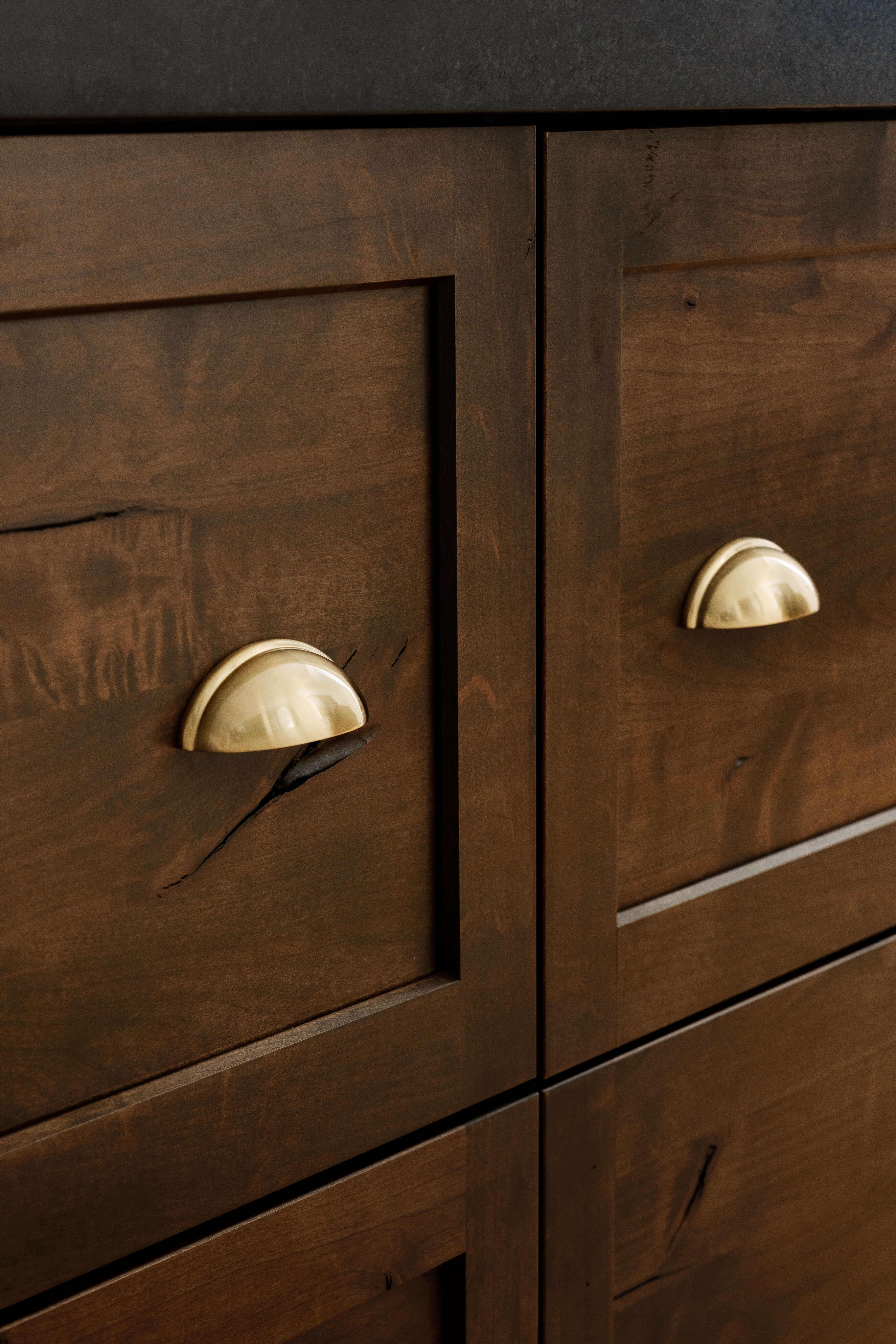 Satin Gold cup handles add to the richness of the stained cabinets.