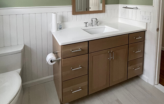 I have a small bathroom and have been looking for a new vanity for several years. I wanted something that would maximize the space that I had available and since my husband and I are both tall people, I wanted one that was taller than most vanities. I looked all over until I was really frustrated because I couldn’t find the size I wanted. I finally learned about Dura Supreme Cabinetry and that there was a dealer in Salem so I got a catalog from them, measured everything, and picked a design and color. The vanity arrived just when I needed it and it is perfect. I love the higher size and it is so much better than my old vanity. Thank you!